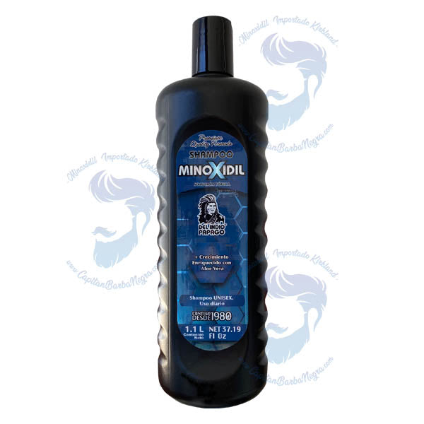 Shampoo adicionado con minoxidil, de la marca indio Papago,especial para el crecimiento de cabello enriquecido con Aloe Vera, funciona tanto para cabello como barba,